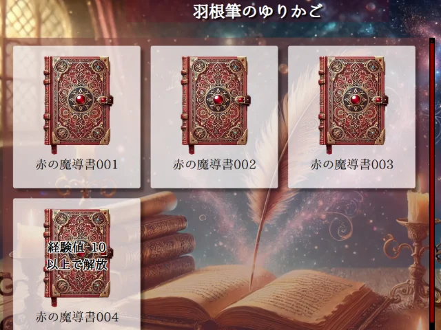 クリアした魔導書はもうあなたのもの。羽根筆のゆりかごで遊んだりリミックスできるようになります。